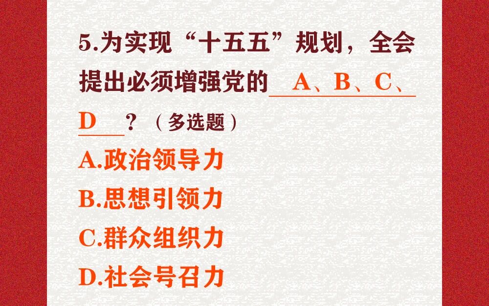 中国共产党第二十届中央委员会第四次全体会议,于2025年10月20日至23日在北京召开。为帮助广大党员、干部深入学习贯彻党的二十届四中全会精神,即日起,共产党员微信推出四中全会精神应知应会知识系列自测,敬请关注。