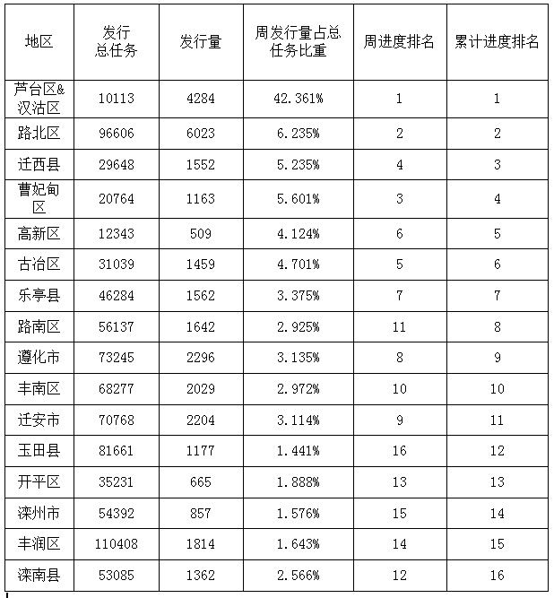 按照《河北省深化收费公路制度改革取消高速公路省界收费站工作方案》要求,唐山市深化收费公路制度改革取消高速公路省界收费站领导小组每周公布各县(市、区)ETC发行排行榜,本期发布2019年9月5日至9月11日ETC发行情况。